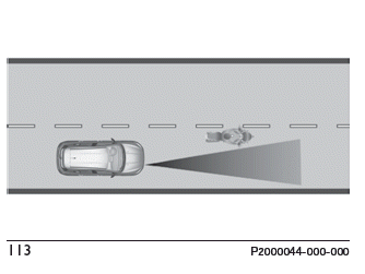 Das System ist nicht in der Lage, in entgegengesetzter Richtung oder in Querrichtung Abb. 114 fahrende Fahrzeuge oder Objekte zu erfassen und greift daher nicht ein.